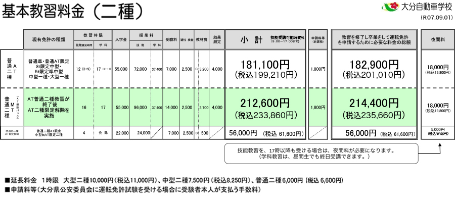 こちらの料金は、教習を修了し卒業して運転免許を申請するために必要な料金の総額です。