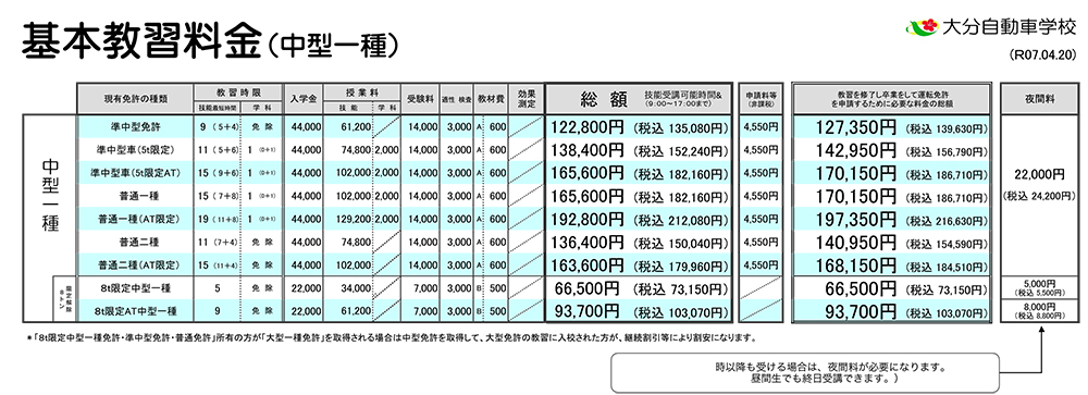 こちらの料金は、教習を修了し卒業して運転免許を申請するために必要な料金の総額です。