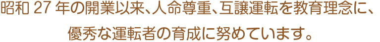 私たちは、生涯無事故のセーフティドライバーを育成するという使命感に燃え、